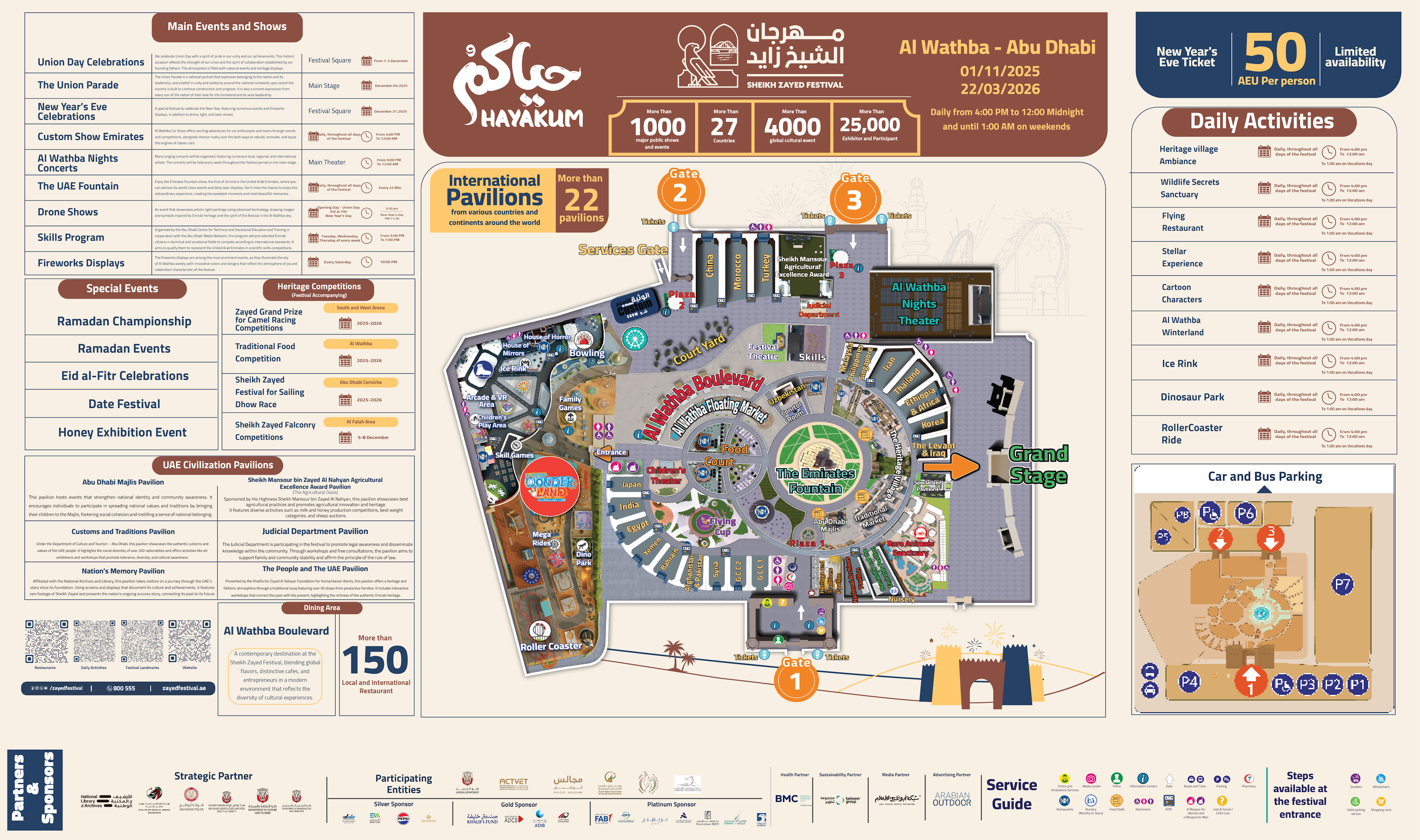 The Sheikh Zayed Festival offers a wide program of activities that cater to all members of the family, ranging from heritage and cultural performances to artistic and musical events, a dedicated amusement area and family friendly activities. The festival also features visual shows such as fireworks and drone displays, along with programs by strategic partners and international pavilions, creating a comprehensive destination that combines entertainment and learning while showcasing cultural diversity and reinforcing national identity.
